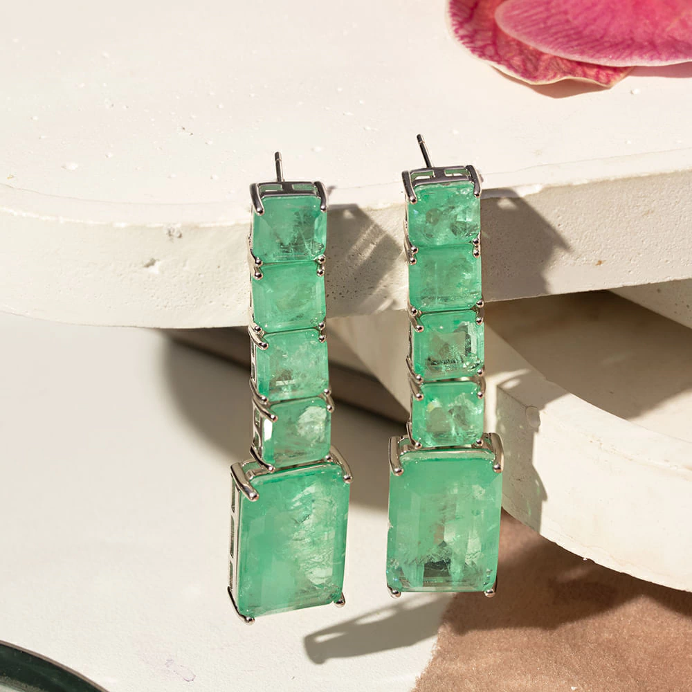 O brinco longo Formas de Fusion Esmeralda Colombiana é puro luxo e sofisticação! Suas pedras fusion em tom verde intenso remetem à beleza das esmeraldas colombianas, irradiando brilho e elegância. O banho de ródio branco realça o design moderno com formas geométricas marcantes. Um acessório leve, imponente e irresistivelmente glamouroso!